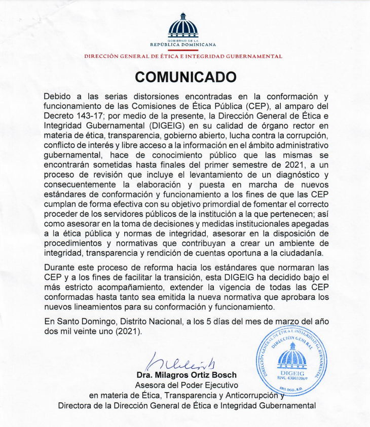 - Comisión de Integridad Gubernamental y Cumplimiento Normativo (CIGCN)